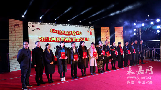 灯光璀璨、歌声嘹亮,1月5日晚,瓯北街道珠岙村举行2018年“村晚”暨迎新春文艺汇演,晚会以“美好生活,从这里唱响”为宗旨,为全村父老乡亲及新居民营造相亲相爱的氛围。现场还表彰了县“十佳新居民企业家”和“十佳新居民”,同时也表彰了村里的十星文明户、最美少年、文体之星等。